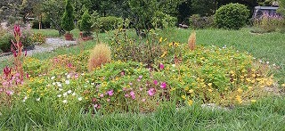 宿根草を中心に、花が自然の姿で咲く花壇として手入れをしてい