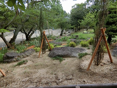 エントランスに記念花壇としてロックガーデンを設置することぬ